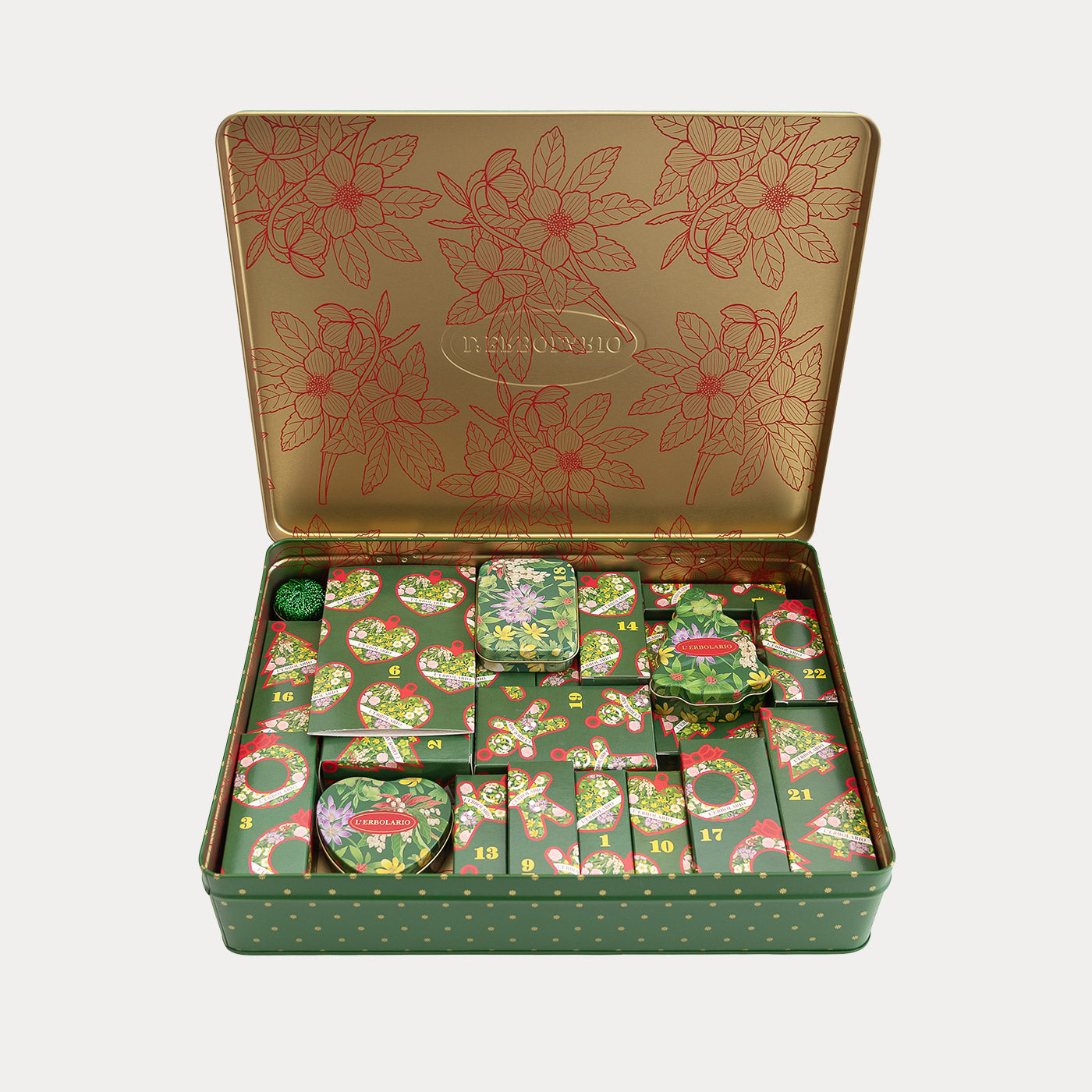 Vivi una magica attesa del Natale insieme al Calendario dell’Avvento 2025 L’Erbolario! 24 sorprese di bellezza ti aspettano all’interno della bellissima scatola in latta decorata: ogni giorno apri una delle scatoline e scopri un cosmetico selezionato tra i nostri prodotti bestseller e le ultime novità. I migliori trattamenti L’Erbolario ti aspettano in pratici formati per prendersi cura di viso, corpo e capelli.