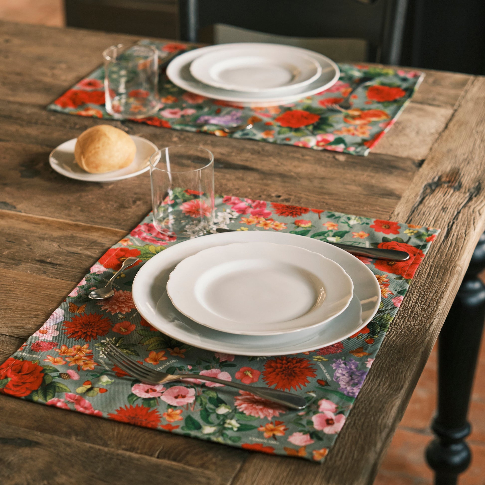 Perfette per colazioni, pranzi leggeri o pause caffè, le Tovagliette L’Erbolario sono realizzate in un tessuto morbido e resistente 100% cotone e decorate con la grafica “Fantasia di Fiori” su sfondo verde salvia. Si possono comodamente lavare in lavatrice.