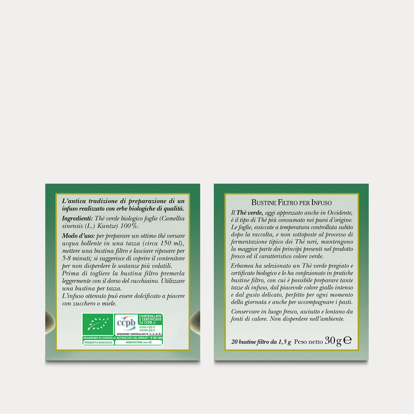 Erbamea ha selezionato un Thè verde pregiato e certificato biologico con cui preparare tante tazze di infuso dal piacevole colore giallo intenso e dal gusto delicato, perfetto per ogni momento della giornata e anche per accompagnare i pasti.