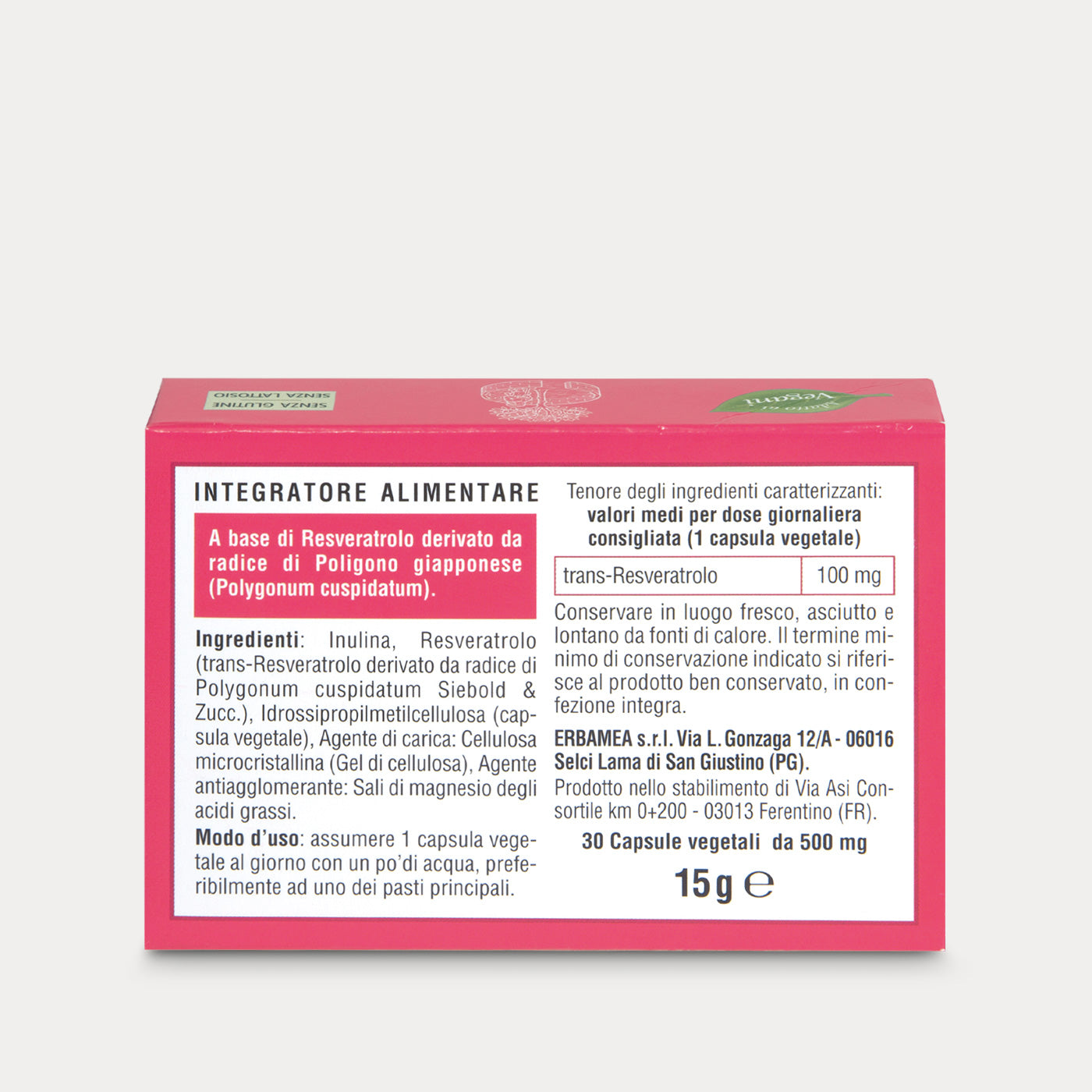 Erbamea propone un ottimo integratore alimentare a base di Resveratrolo ottenuto da radice di Polygonum cuspidatum, noto anche come Poligono Giapponese. Il Polygonum cuspidatum è una pianta di origine asiatica utile per aiutare a conservare la regolare funzionalità cardiovascolare. La sua radice contiene una quantità di Resveratrolo molto più elevata di quella presente nelle bucce degli acini d’uva e nel vino rosso.