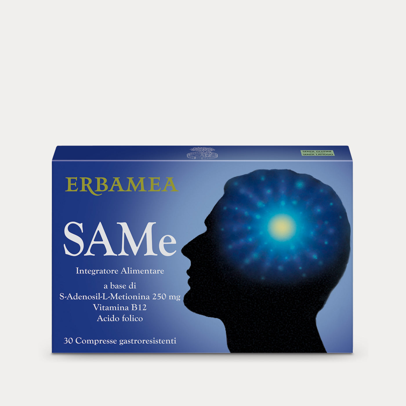 Erbamea propone un integratore a base di S-Adenosil-L-Metionina (SAMe) in associazione con Acido folico e Vitamina B12. L'Acido folico contribuisce alla normale funzione psicologica; la Vitamina B12 contribuisce al normale funzionamento del sistema nervoso e alla riduzione della stanchezza e dell'affaticamento.