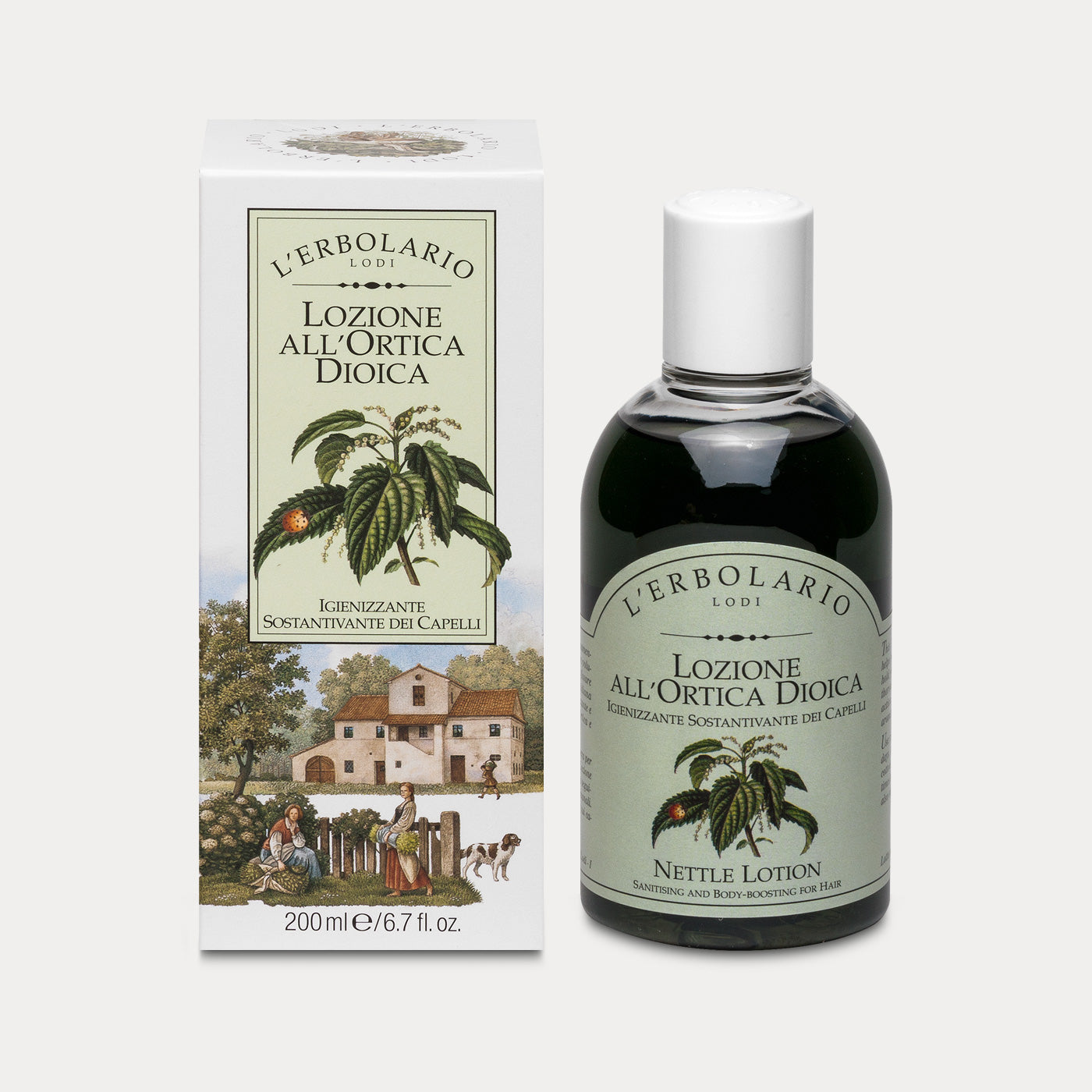 La Lozione all’Ortica dioica, rigorosamente analcolica, aiuta i capelli a ritrovare volume, vigore, lucentezza e contribuisce a fissare l’acconciatura. Con una pratica quotidiana e prolungata, svolge un’azione igienizzante e sostantivante, grazie all’Estratto di Ortica e all’Acqua aromatica di Rosmarino.