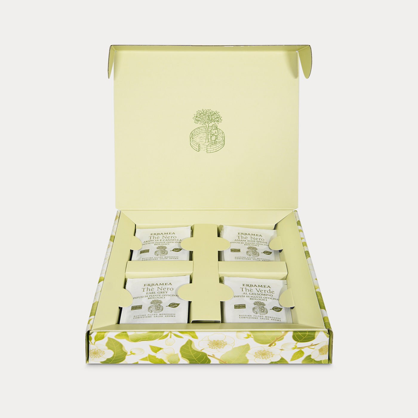 Ogni tazza di Thè è un viaggio immaginario, una piacevole pausa di relax che rende magico qualsiasi momento della giornata, coinvolgendoci in un’esperienza di gusto e fragranza sempre unica. Erbamea propone una selezione dei suoi infusi in una confezione regalo bella ed elegante.