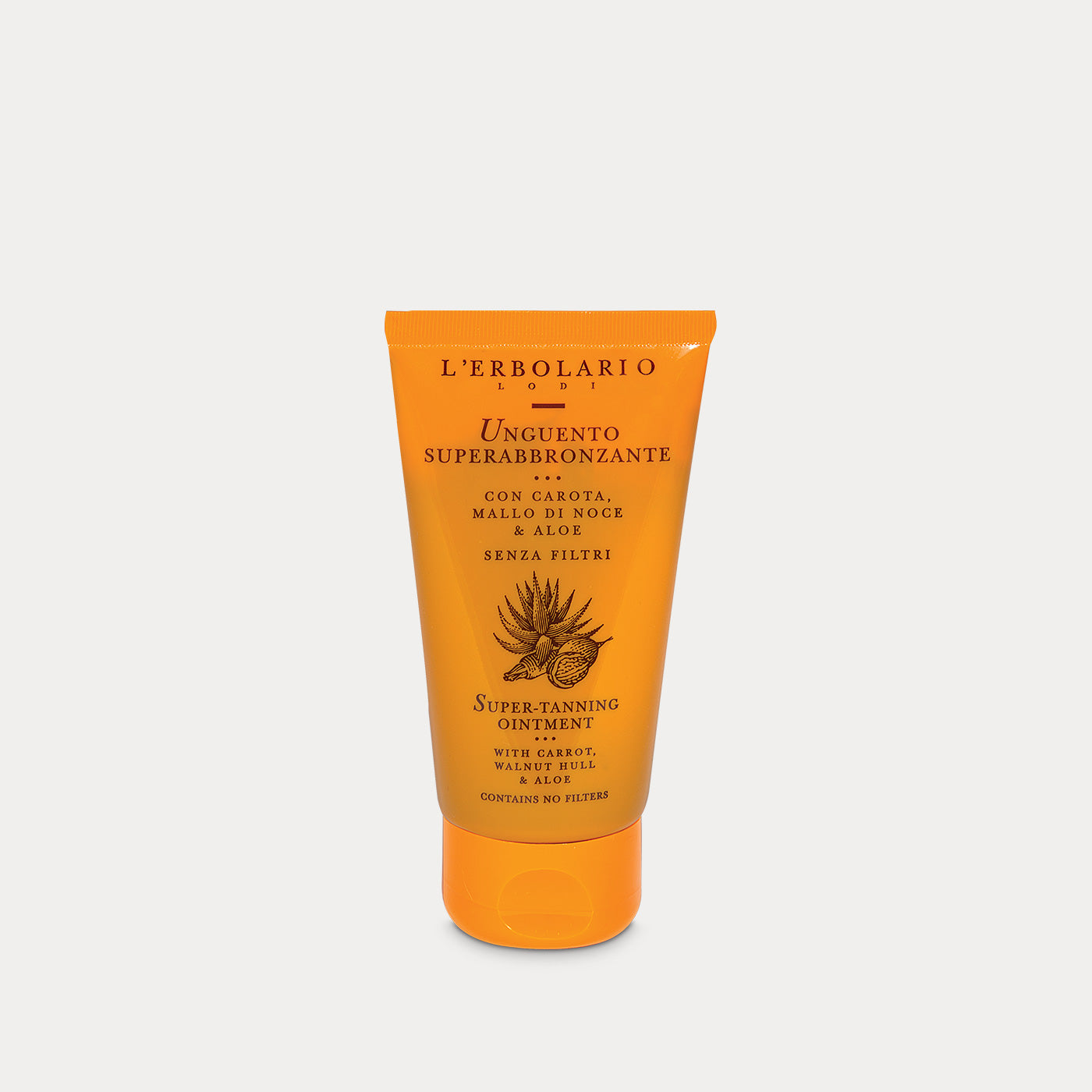 L’Unguento Superabbronzante per il corpo non contiene filtri solari ed è perciò pensato per chi ha una pelle ambrata e robusta, naturalmente amica del sole. Contiene ingredienti nutrienti ed addolcenti per donare comfort e splendore alla pelle, durante e dopo l’esposizione. Il formato 75 ml rende questo Unguento abbronzante ideale da portare in viaggio. Si applica uniformemente massaggiando delicatamente, per rendere la pelle del corpo morbida, satinata, lucente.